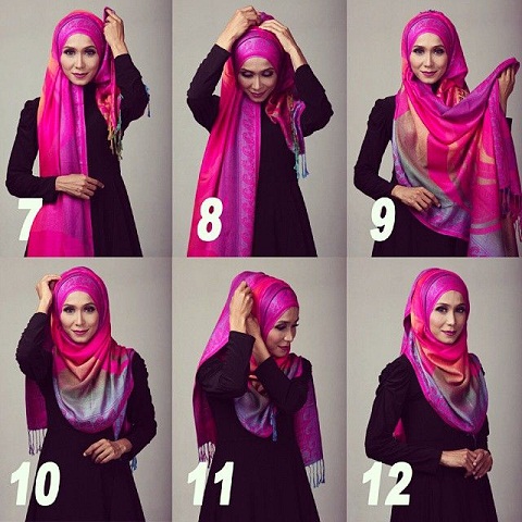 It is merely a piece of cloth to cover one’s head and hair. The Arabic hijab style step-by-step teaches you the easiest way to wrap the scarf over your head, pin it up the sides under the chin, flip it around the shoulders, and finally spread both ends to cover the chest. A matching headpiece would give you a stunning look.