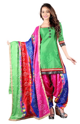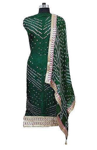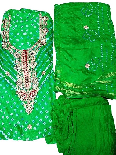 - Design: Green Bandhani Salwar Suit with Silver Lining Borders