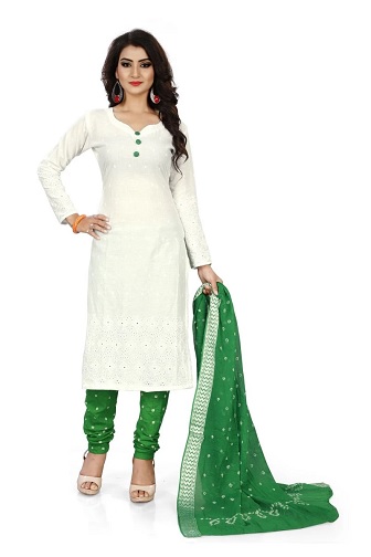 - Design: White Self-Design Bandhani Salwar with Green Pants and Dupatta