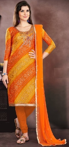 Satin fabric is of a high standard. When satin is blended with bandhani print, it will provide dignity with convenience. Although the pattern looks simple, it is magnificent and gives an elegant result. The marvellous design adds to the look with satin fabric when worn. It is quite traditional in touch with modern contemporary hues.