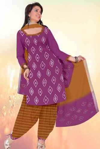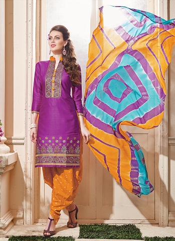 - Design: Purple and Yellow Bandhani and Embroidery Work Salwar Suit