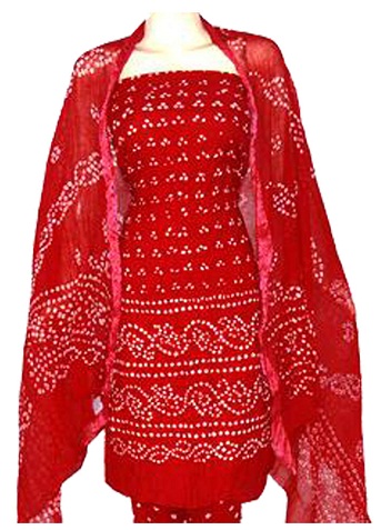 - Design: Red Bandhani Salwar Suit with White Motif Patterns