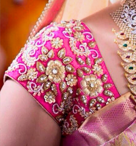 - Blouse Design: Pink Maggam Work Bridal Blouse