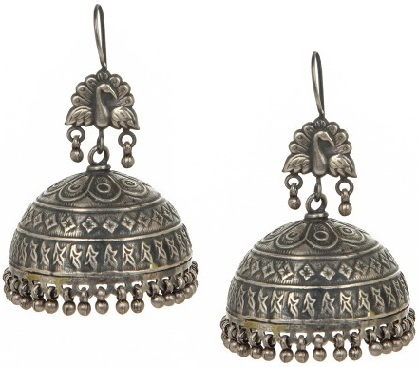 Jhumkis or jhumkas look trendy yet ethnic at the same time. One of the most preferred standalone jewellery of all time can be a jhumki. Oxidised silver with Madhubhan inspired designs are part of antique silver jewellery. They have that blackish touch because of the oxidised silver, which gives that beautiful look when worn.