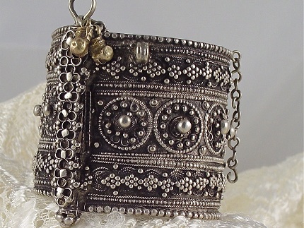 Cuffs are bracelets that can wear on one open side pattern. They can be opened from one side and can be closed. They are not those usual thin chain kinds of bracelets but are very thick and a bit heavy. Very much popular these days, cuffs have been popular since olden times too. Antique oxidised cuffs have intricate designs and little silver beads hanging from the edges for that antique feel. Oxidised silver in these cuffs gives a lovely look to the hands.