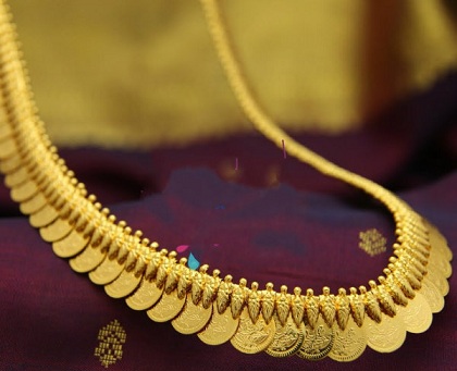 Coin necklaces, also known as “kaasumaala”: Kaasu means coins/money, and Maala means chain/necklace, have been part of antique jewellery for ages. Goddesses used to wear these ornaments according to Hindu scriptures. These antique coin necklaces have small round coins with the image of Goddess Laxmi (Goddess of wealth) on the front joined beautifully to form a necklace or a long chain. These antique coin chains go very well with traditional dance performances, traditional wear, festive wear etc.