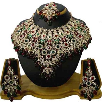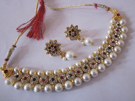 Chokers are heavenly necklaces in precious and semi-precious stones with exclusive cut diamonds for that goddess look. Diamonds with rubies, emeralds, sapphires etc., are classic for chokers, and the look is flaunted by lots of brides and even many celebrities. The shine of white diamonds and the classy look of precious stones get matched in one heavy jewellery set.
