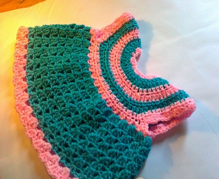 This one is the dazzling sea green and pink shaded new-born qureshia design frock. It is so cute and tiny that its design is very unique and it is a sleeveless type. It has a cute little crochet pattern knitted carefully both on its top and body parts. This design can be readily worn for any special occasion without disturbing the wearing comfortable of the cute little new-borns.