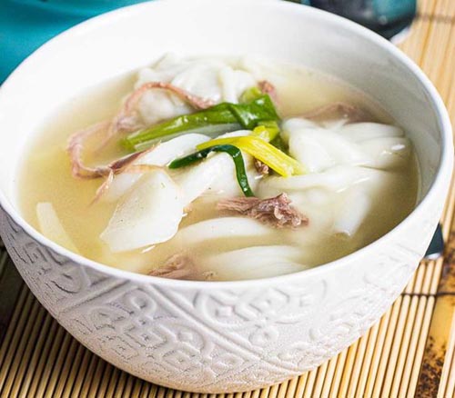 Kimchi is the heart of the people in Korea. This is made of pickled cabbage and is eaten as both starter and as a side dish. It is pungent with the taste of raw cabbage and has sweet, spicy and sour balanced taste. Kimchi is also used in wraps and other dishes to enhance the taste.