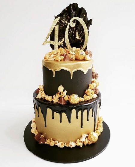 Nothing can beat the magic of black and gold, the dynamic duo set to steal the spotlight at your celebration. The two tiers dressed in striking black and gold with contrasting drips are sure to demand attention at the party. Your guests are in for a delightful surprise as they savour the combo of moist cake layers, combined with the crunch of popcorn and sweet treats. This amazing cake design is a heartfelt tribute to 40 glorious years and promises to be the star of your celebration.