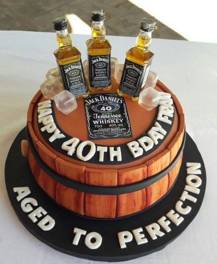 Get ready for a treat that’s guaranteed to kick the excitement levels high for the man hitting his 40s. The whisky barrel-shaped cake is a classic choice, always impressive and timeless. The mini alcohol bottles and sugar ‘ice’ cubes as decoration elements add a realistic touch to elevate the whole experience. Consider personalizing the cake with his name and a heartfelt message to add an extra dose of special!
