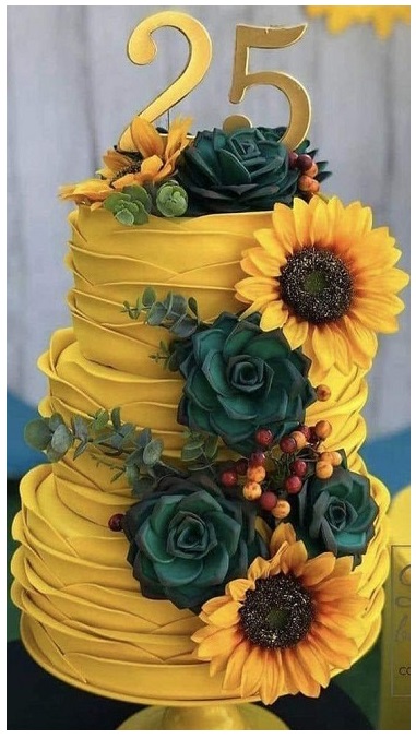 7. Succulent and Sunflower 25 Year Birthday Cake: