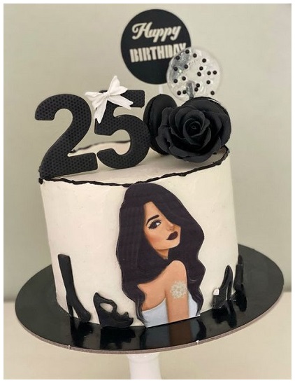 9. Black and White Theme 25 Year Cake for Birthday: