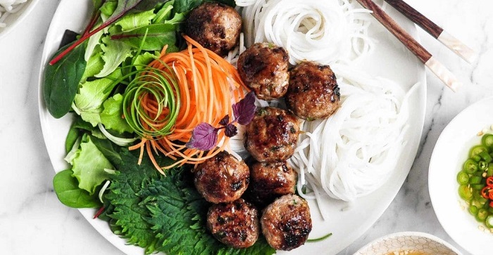 This food is considered as the best Vietnamese street foods, and this is a specialty of Hanoi (the capital city of Vietnam). This dish is quite similar to the American patty, bun cha is char-grilled pork patties served with vermicelli noodles and traditional herbs. The pork patties are burnt over the smoldering coals and are served with a vinegary fish sauce and crunchy veggies as a side dish. The plates served here are massive and can be eaten as lunch.