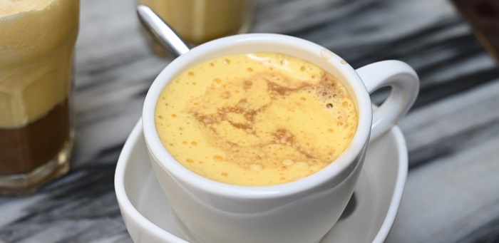 Have you ever heard of egg coffee. It sounds interesting, right !! Vietnam is famous for egg coffee, Ca phe trung. The black coffee and the egg yolk are whipped into condensed milk, which makes it creamy and a smooth cup of coffee. If you are in Vietnam, you should surely try this coffee.