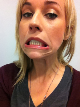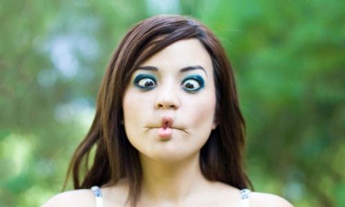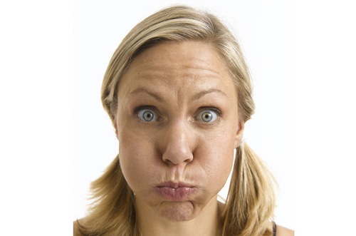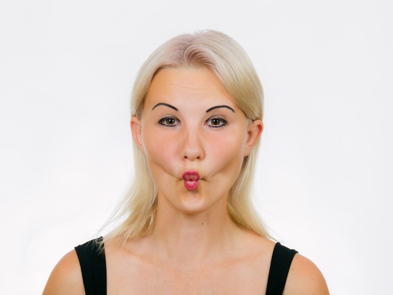 - Suck your cheeks in and with your lips make a fish face and try to smile.