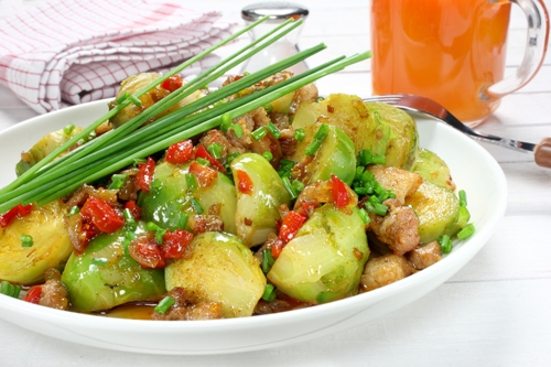 Chicken or turkey would be best for this dish, so use a pound of either. You also would need celery with leaves, chopped fine, half a cabbage chopped fine, and a large onion chopped fine. For the sauce, you would need two cups of purified water and two tablespoons of cornstarch. In a frying pan put the meat, veggies and onions, with the oil and sauté them all well. Mix the sauce in it and stir fry. This should be done in ten minutes, and it has low calories to keep your tummy full till the next meal.