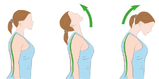 - Slowly raise the neck to look at the ceiling, hold for 5 seconds and slowly bring the position to look straight.
