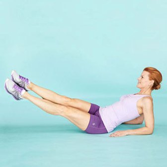 - As you exhale, bend your knees and bring them down.