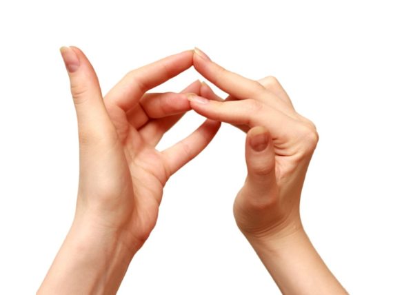 - And next touch the tip of the left-hand index finger with the tip of the right-hand middle finger. It’s just the opposite of the previous step.