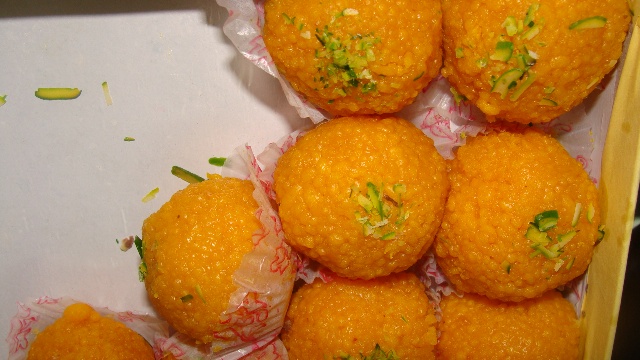 These are made with very small sized boondi, almost like little rice pearls. It is made in any occasions be it a wedding, births or given as Prasad in Hindu temples. Besan(chickpea flour) is used to make laddu, rava (wheat semolina) and ground coconut. These are combined with sugar and other flavorings, cooked in ghee (clarified butter) and molded into a ball-shape.