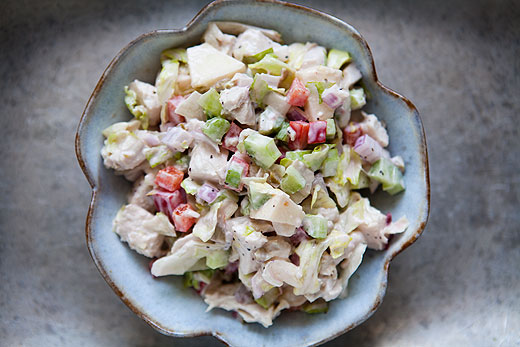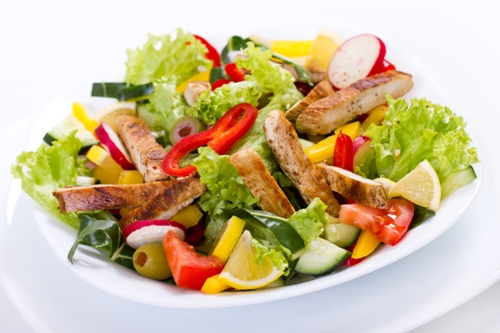 this could be the left over grilled chicken to which a mashed boiled egg is added. Mince the two well in a blender and form a paste. Cut veggies of your choice, make it colourful and add a teaspoon of olive oil. Mix the paste and the veggies, toss with cilantro and thyme, and munch away.