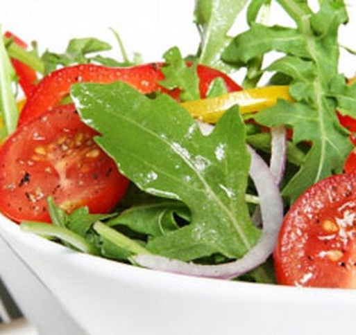 This one is usually salad made of a single kind of vegetable or even a fruit. You could also make this with a single kind of meat. It is tossed in a dressing with a base that can have two ingredients, which are typically used for garnishing purposes. This simple salad has only arugula, cherry tomatoes and olives. The cherry tomato is added to make it colourful, at the same time, trying to make it more wholesome.