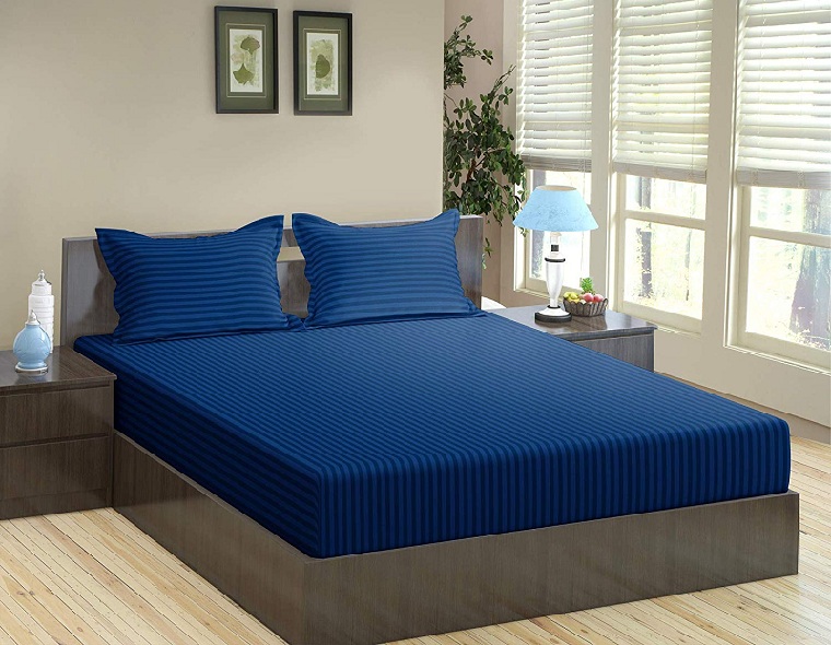The cotton fitted double bed sheets are available in the market at a good price. This cotton fitted bedsheets can be in disguise of linen. But the bedsheet is dark blue in colour with simple patterns on it. The thread count of the bedsheet is 210. It is a very good choice for happy festivals at home. The décor of the room can be enhanced easily with the help of the same bed sheet.