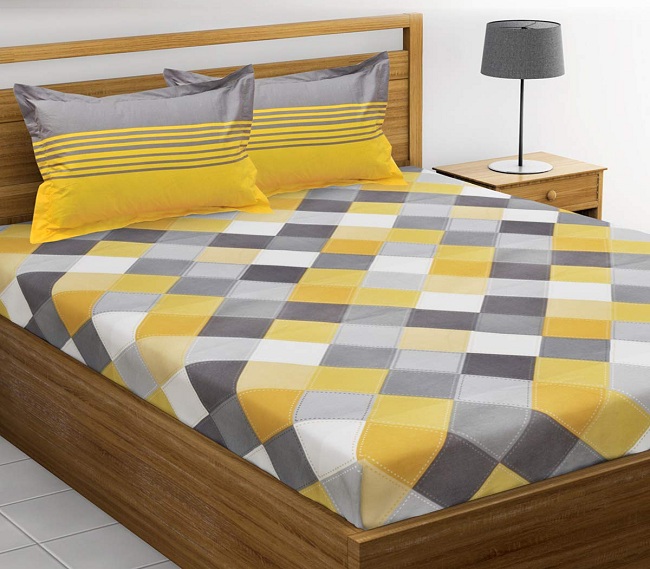 The deep fitted bed sheets have deep essence of colours and design over it. it is a yellow fitted bed sheet with a grey fitted bed sheet at the same time. It is a simple cotton bed sheet chosen from the sets of fitted bed sheets. The cotton is provided from Ahmedabad which is known for its quality. Thus, it is going to be a good choice for simple occasions at home.