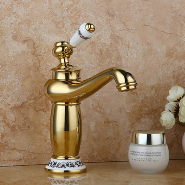 Looking for a pretty and dainty kind of gold plated basin tap? Then this one is the best choice for you. This is a gold tap that has a white contrast on the handle and the base. The base and the handle are intricately decorated with floral edge work in black. The curved spout of this tap is reminiscent of vintage fixtures. This is a mixer tap so you get water at the right temperature easily. You can enjoy a luxurious wash with this gold tap and feel glamorous too.