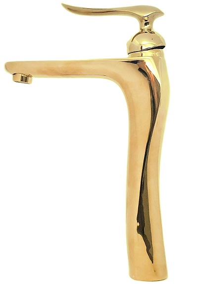 Here is luxury at its highest level! Not only is the tap gold in colour it also has diamonds on the body. This designer gold tap comes with a nice curved spout and handle. The sleek look of this exquisite tap is what attracts many to it. The white and gold contrast of this tap is also something wonderful. This will look great on a white basin as the contrast will be highlighted well. So if you are looking for luxury then do get this designer tap.