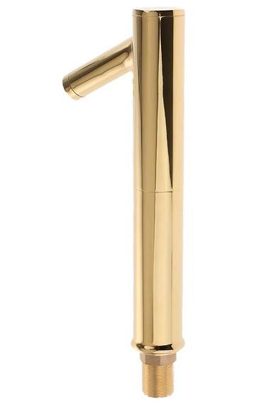 Choose this stunning designer style gold bath mixer tap that comes in a tube style. The stainless steel tap is given a gold plating to get a wonderful shine that will last. Gold plated taps bathroom fixtures are a great attraction among many clients. When gold is matched with white sinks, then the décor is just right. Gold bathroom basin taps like this add a much needed luxurious touch to your interiors. This is a mixer tap with a single handle for that ease of use.
