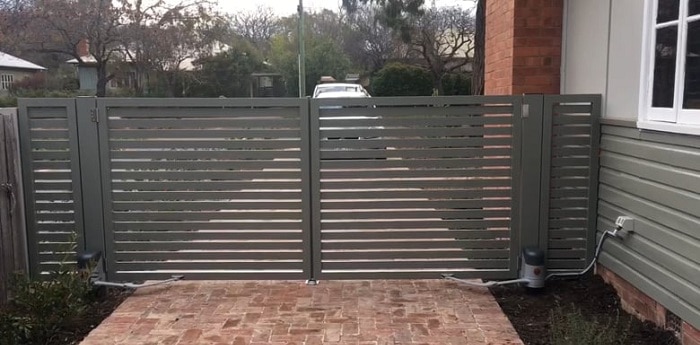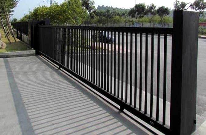 Here is a humongous metal sliding gate that works in dual ways. The extra-large sized barricade works on a track using wheels. When not in use, it functions as a protective fence. You can combine it with a solid wall or a matching fence for consistency. Although it looks quite heavy, the wheels make the operation, a cakewalk!