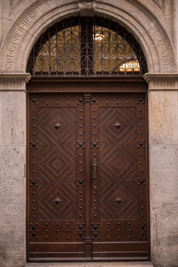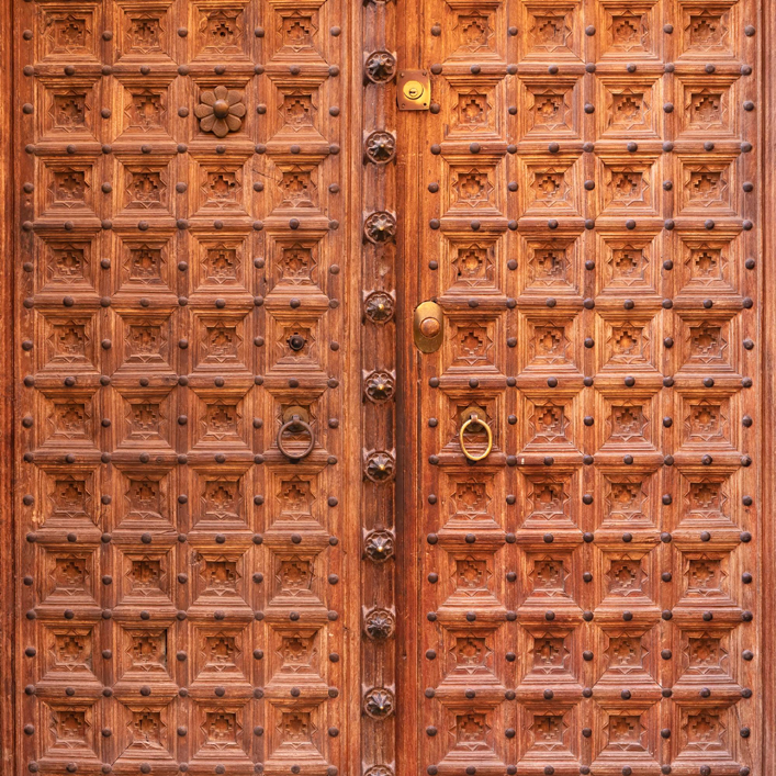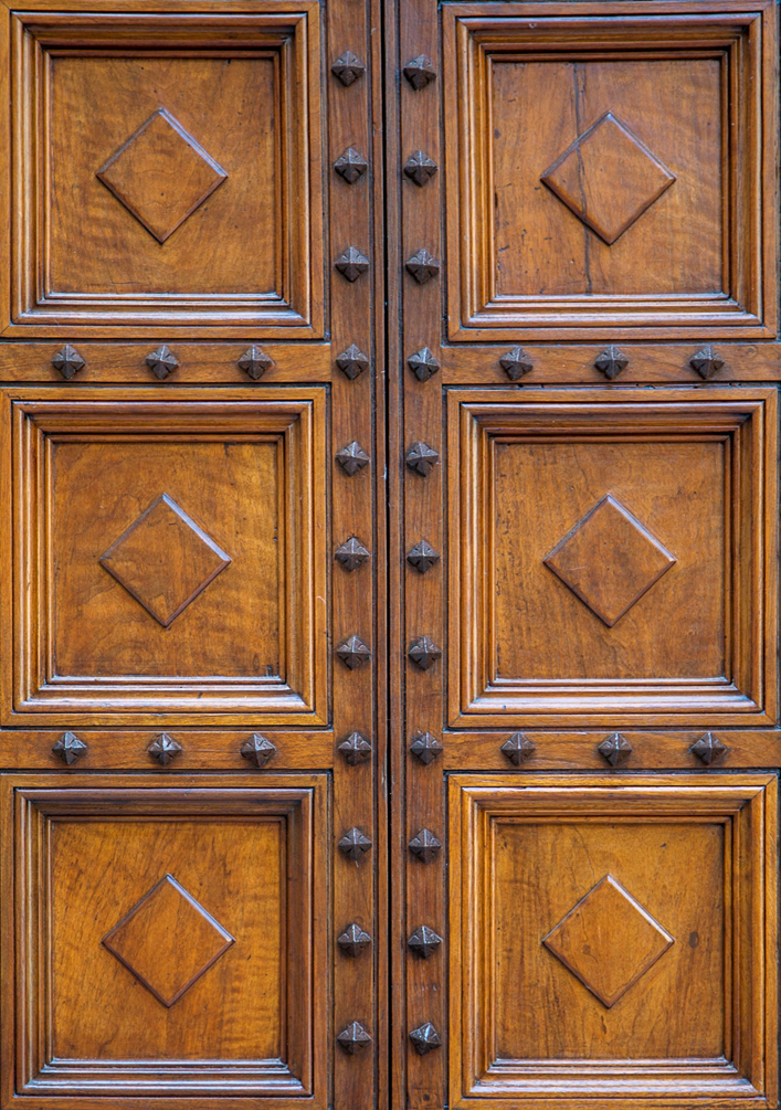 Check out this double door, most often seen in castles and forts. This one is large; however, you could customize it to your size and preference. The rustic style is a classy choice if you want to give an old-school touch to your decor or home. This main door design for a home double door option can be made with any wood and customized to your size requirements.
