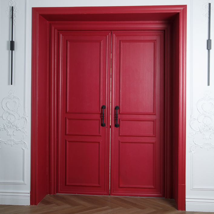 Here is another traditional double door design that we vouch for. This best double door design comes in good quality wood and is a common and popular choice. It is strong and is durable. The door is painted in red burgundy color, thus elevating the look of the decor.