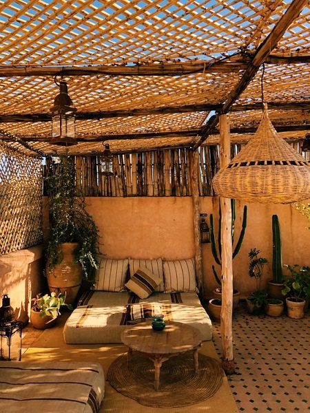 Suppose you want an eco-friendly alternative to include in your rooftop designs. In that case, bamboo roofing can be a practical choice. Irrespective of the season, this element looks aesthetically pleasing while providing comfort. However, depending on the season, you can always add features to make the place more appealing. Furthermore, to make the rooftop more inviting, you can add seaters and potted plants that add to the look of the space.