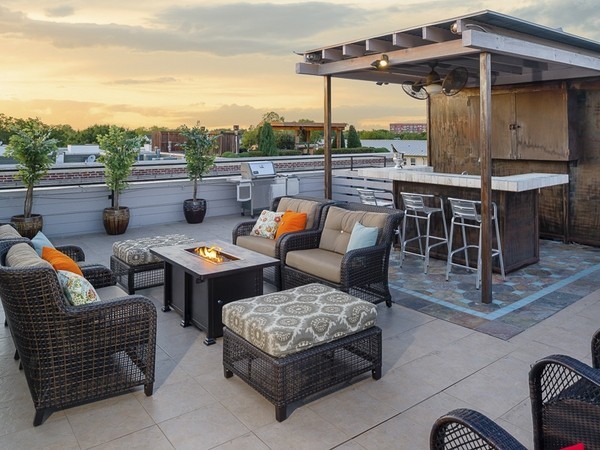 A rooftop space allows endless possibilities to experiment and incorporate your style into the area. In addition to providing a fantastic view, you can decorate the outdoor space in different styles based on your personal preferences. For example, a dining space, lounge furniture, and cute little gardens create a perfectly entertaining and relaxing space. Furthermore, you can divide the flooring equally, covering one half with artificial grass. In contrast, the other with wooden flooring can have seating arrangements.