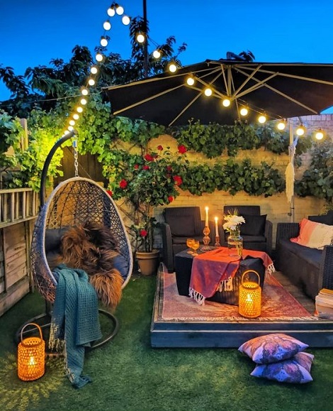 You can take inspiration from several places, whether on television, in magazines, or on social media. However, you can always add your twist to the design you like making it your own. Represent your colourful personality by using vibrant colours for the balcony in the form of plants, drapes, lights, and cushions. Finally, add a gorgeous brightness to the space by placing a string of bulbs over the top in addition to the candle holders.