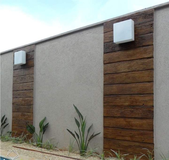 If you are a rustic compound wall elevation fan, using precast walls, a mixture of concrete and steel, can be a perfect choice. These walls are easy to install and an ideal choice for residential properties. Though the base wall might look simple and non-fancy, adding horizontal wooden lines across the borders with the required distance gives you a wall design that beautifully elevates the base material.