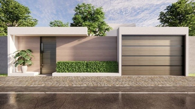 Suppose you want your compound wall to stand out against the available ones. In that case, this wooden compound wall elevation design can be a perfect choice. However, as seen in the picture, the compound wall combines cement and wood, making it even more special. Redwood, pine, and cedar are popular wood species used for the boundary wall. In addition to providing privacy and security, these types of compound wall designs look unique. However, remember that wooden walls are vulnerable to damage and require more maintenance than stone or brick walls.