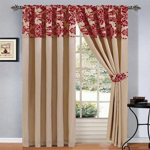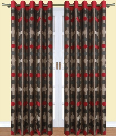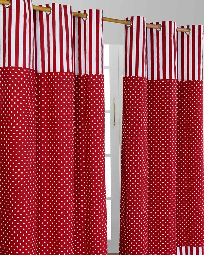 If you are the individual who have less interest on those floral type or traditional designs, then you can go for such options as shown in the image link. It’s a red curtain which has Polka dots all over its body. The entire body is of bright red colour, and it has red and white shades of stripes as its border in the top most part of the curtain.