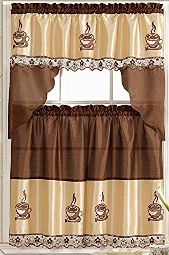 5. Embroidered Kitchen Curtains with Coffee Print: