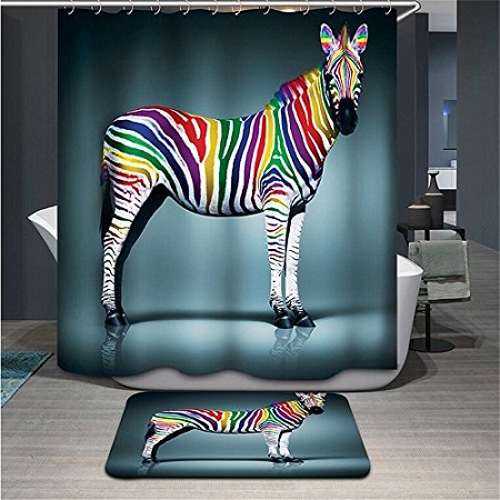 This one is a wonderful curtain for animal lovers. The curtain has a marvellous 3D-printed colourful zebra. It also has a matching floor mat. Both the mat and the curtain are waterproof and easily manageable. The curtain is long and covers the area well. It also has metallic rustproof rings.