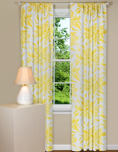 Make your room complete and lively with these yellow flower curtains. The curtain has enormous floral designs in yellow shades that are against a neutral background. The fabric is weather-resistant and the vibrant floral design brightens up the room. The fabric is washable.
