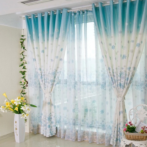 You can decorate your living room with these blue floral curtains to make it look prettier. The curtain print is a country style and relaxes the mood. The room gets brighter due to the beautiful pattern. These curtains need a double drape for extra effect.