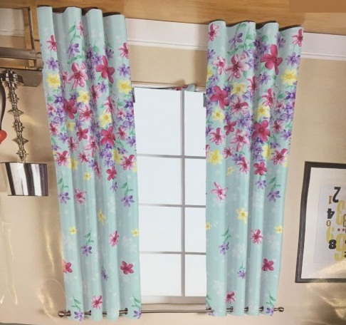 This double-panelled vintage floral curtain is made of cotton and polyester. It is also easy to hang. The style is a casual vintage with a large amount of floral design at the bottom and sparsely printed flowers towards the top part. It is a machine-washable curtain.
