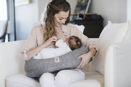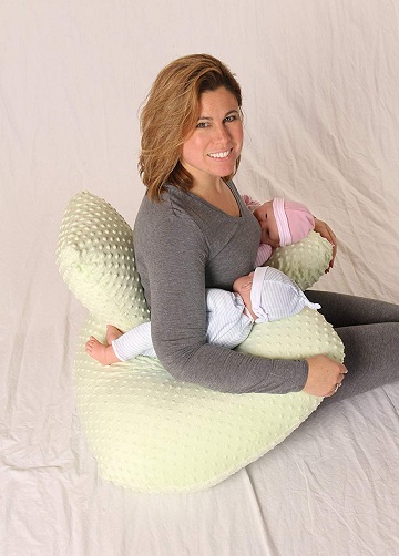 The standard breastfeeding pillows might not work for mothers who have large breasts. This nursing pillow is tall and wide and thus gives more space that will be needed. It is shaped shrimp-like whose one end of it is lower than the other for positioning the baby at a normal slope. The cushion is washable and is very useful for all plus-sized women. It is priced at $30, and you can also order a cushion cover with it.