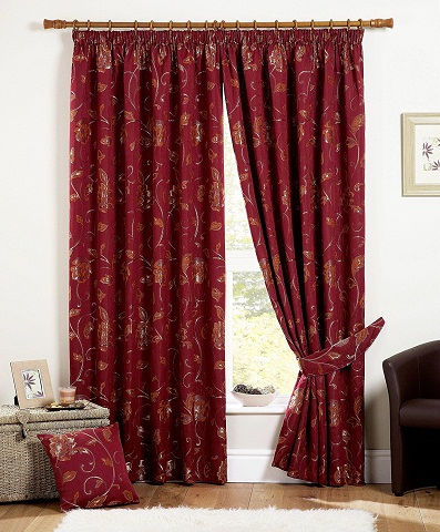 This thick curtain for winter is highly desirable during cold. The fabric of this curtain is much thick to protect you from coldness. The red curtain contains a floral print with a pencil pleat on top. The cushion cover also has the same print.