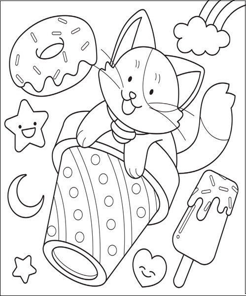 This is another colouring page where the cat is playing adorably with Yarn. But with more intricate details attached to it, making this page a perfect choice for adults and young adults. Who can manage the intricacies. Brush pens or sketch pens are the ideal tools to reach all the tiny details of the sheet easily. You can either go for a single colour or use multiple colours to bring life to the page.