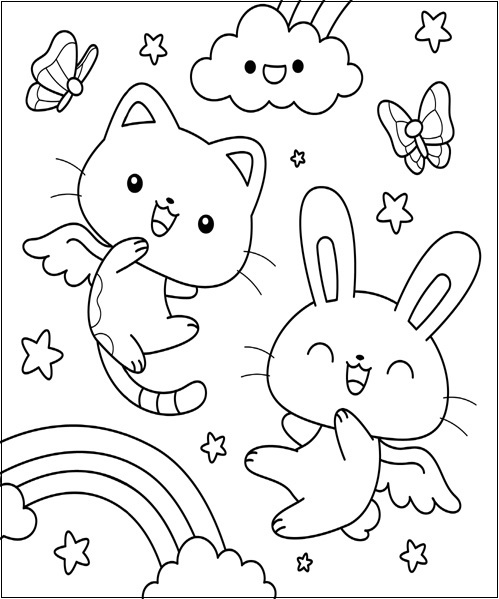 Bunny and Kittens are among the most adorable creatures, and this colouring page combines both, creating a delightful colouring experience for kids of all ages. The playful Kitten and fluffy bunny illustrated on this page make it an ideal choice for kids who love adorable animals. You can let kids choose colours by letting their imaginations run wild, bringing out a unique result. Crayons or colour pencils can be an ideal choice for mess-free work.